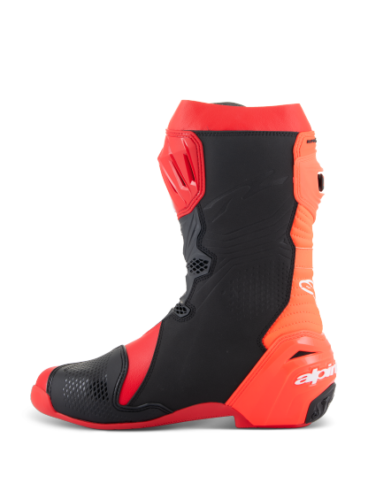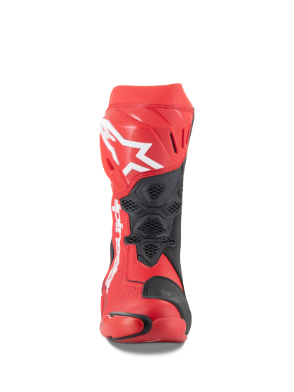 Almost every component of the Supertech R Boot, Alpinestars definitive racing boot as worn by a roster of champions past and present, has undergone a rigorous program of upgrades to sharpen its performance features even further. Featuring innovations derived using feedback from Alpinestars involvement in top flight racing, key elements include a newly redesigned front flex area, a redesigned rear bellow, a redesigned top gaitor, a new shifter and shin plate, a new shin slider and a new inner bootie, all of which enhance the comfort, protection and the performance of this boot to a new class-leading high.